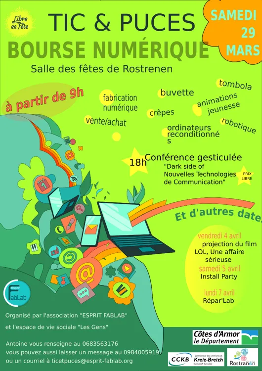 Esprit Fab’Lab et l’Espace de Vie Sociale « Les Gens », en collaboration avec le Département des Côtes d’Armor, la Communauté de communes du Kreiz Breizh et la Ville de Rostrenen, proposent une journée autour du numérique.